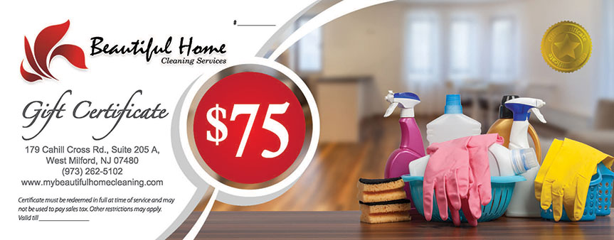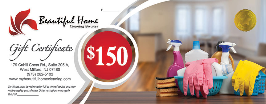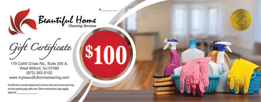 Gift a gift of clean. No matter what the occasion, a Beautiful Home Cleaning gift certificate is a perfect way to say you care, or give thanks.
